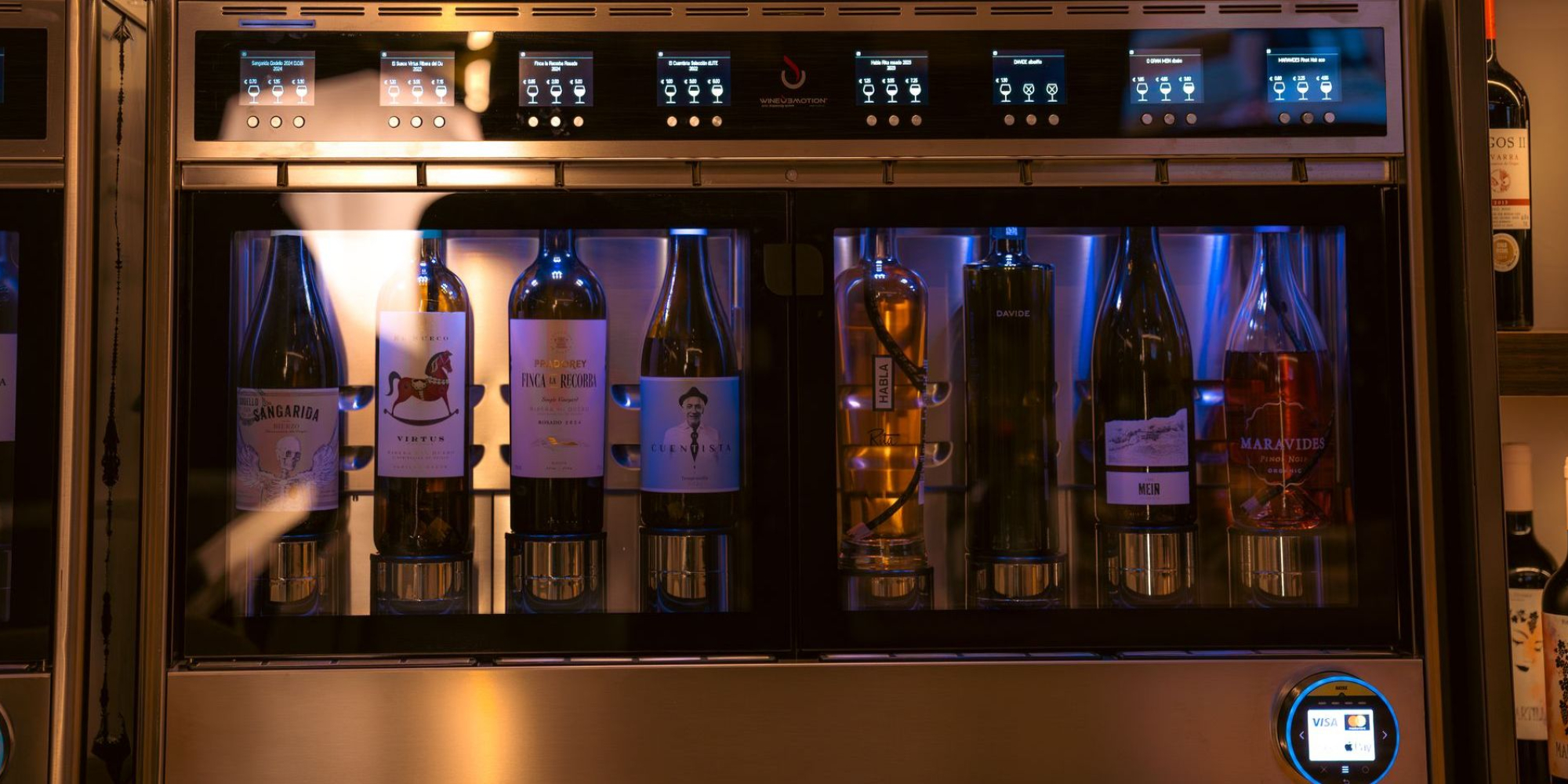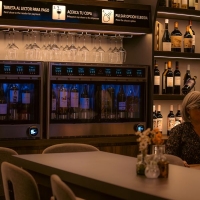 Vinoteca con autoservicio de vinos, ambiente cuidado y tapas gourmet frente al mar en Garrucha, Almería.